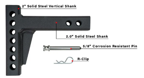 The BulletProof Weight Distribution Shank is the ultimate choice for those times you need to use a weight distribution system. This solid steel shank allows you to connect almost any weight distribution system. After modifying your vehicle's suspension and/or adding larger tires, you may need a longer drop. The shank can be used in the drop or the rise position.