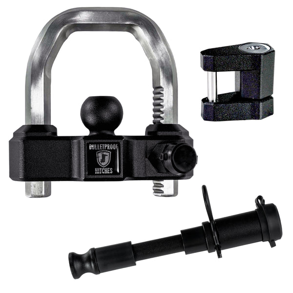 Built with stainless steel internals, the BulletProof 5/8" Black Ops Locking Pin is designed to fit all 2", 2.5" and 3" hitch receivers. With 4" of usable length, the universal design makes it compatible with any vehicle or hitch on the market. It includes both a 2" & 2.5" anti-rattle spacer for a snug, silent ride when being used on a 2" or 2.5" receiver.